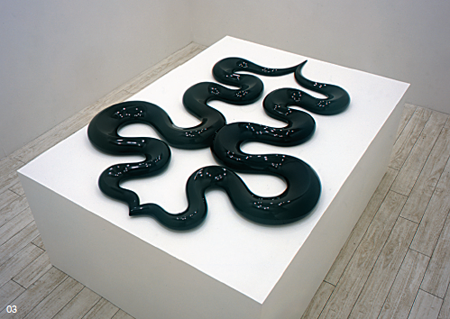 在北京最冷的冬日,见到了日本年轻艺术家山本一弥的作品,就让我感到了来自东瀛,类似清酒的“强”。这个名为“不对称的影子”的雕塑展,每件作品都“仅此一件”,这对雕塑家来说是很少见的。材料无论是木头还是透明树脂,都是山本一弥亲自动手完成。他称很多作品都要花上两、三个月才能打磨出来,并试图将材料本身的魅力推到极至。充裕的时间以及情感安静地注入,使作品拥有了丰富的肌理与光泽,触摸时有如皮肤的表面。这一切甚至在提醒观者,要做一个严肃的艺术家首先应该是个好工匠。当然,日本艺术家的很多作品常常是精美的制作配以简单的思维,思想的厚度略感不足。而山本一弥却有些不同,在他作品简单形式的背后确实有着理性的独特思考。